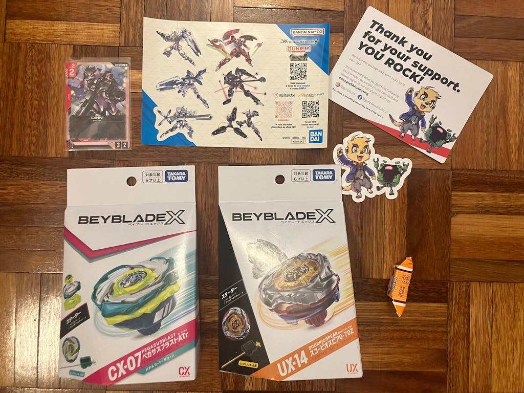 This starter pack includes a Beyblade X Winder Launcher.
